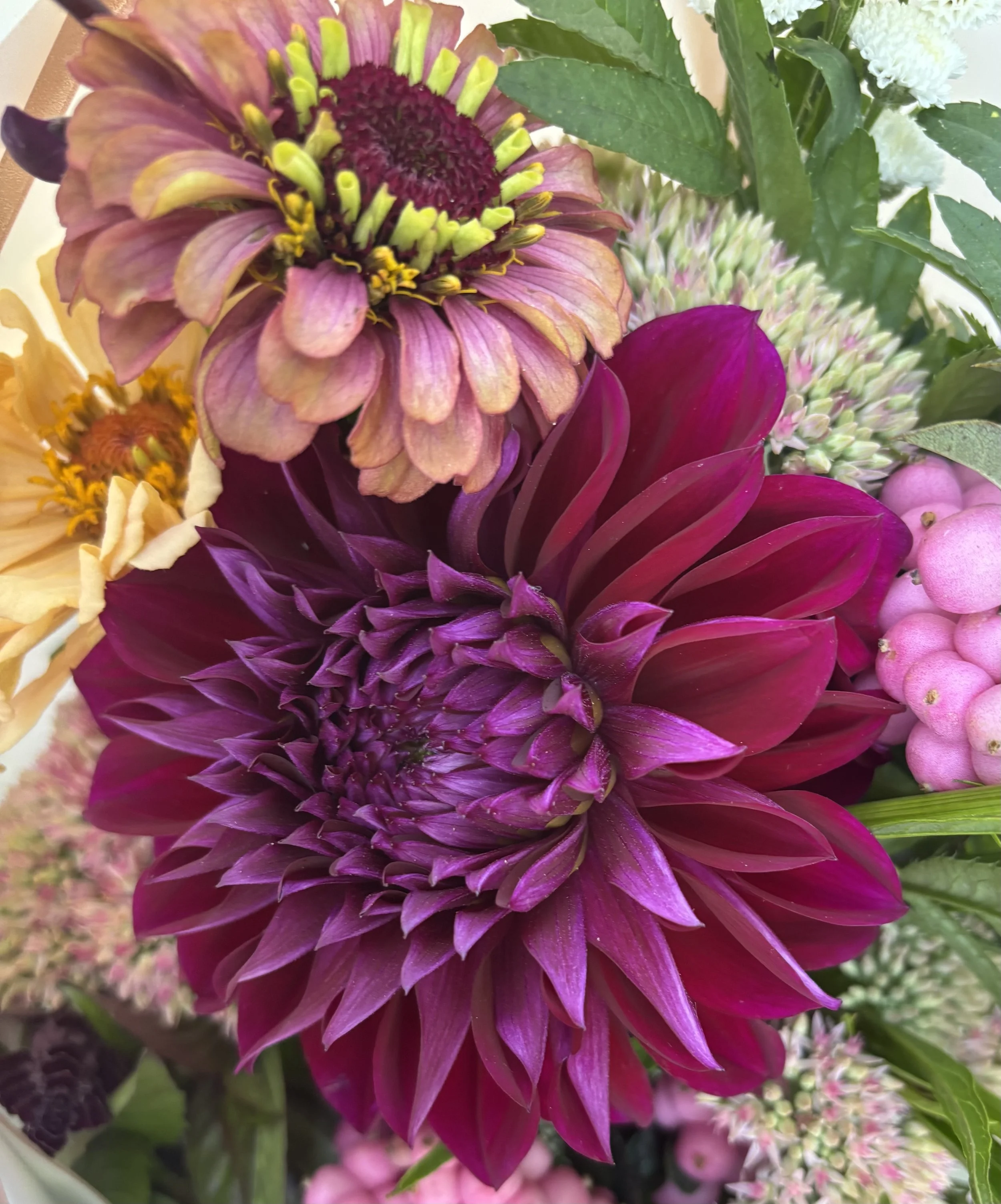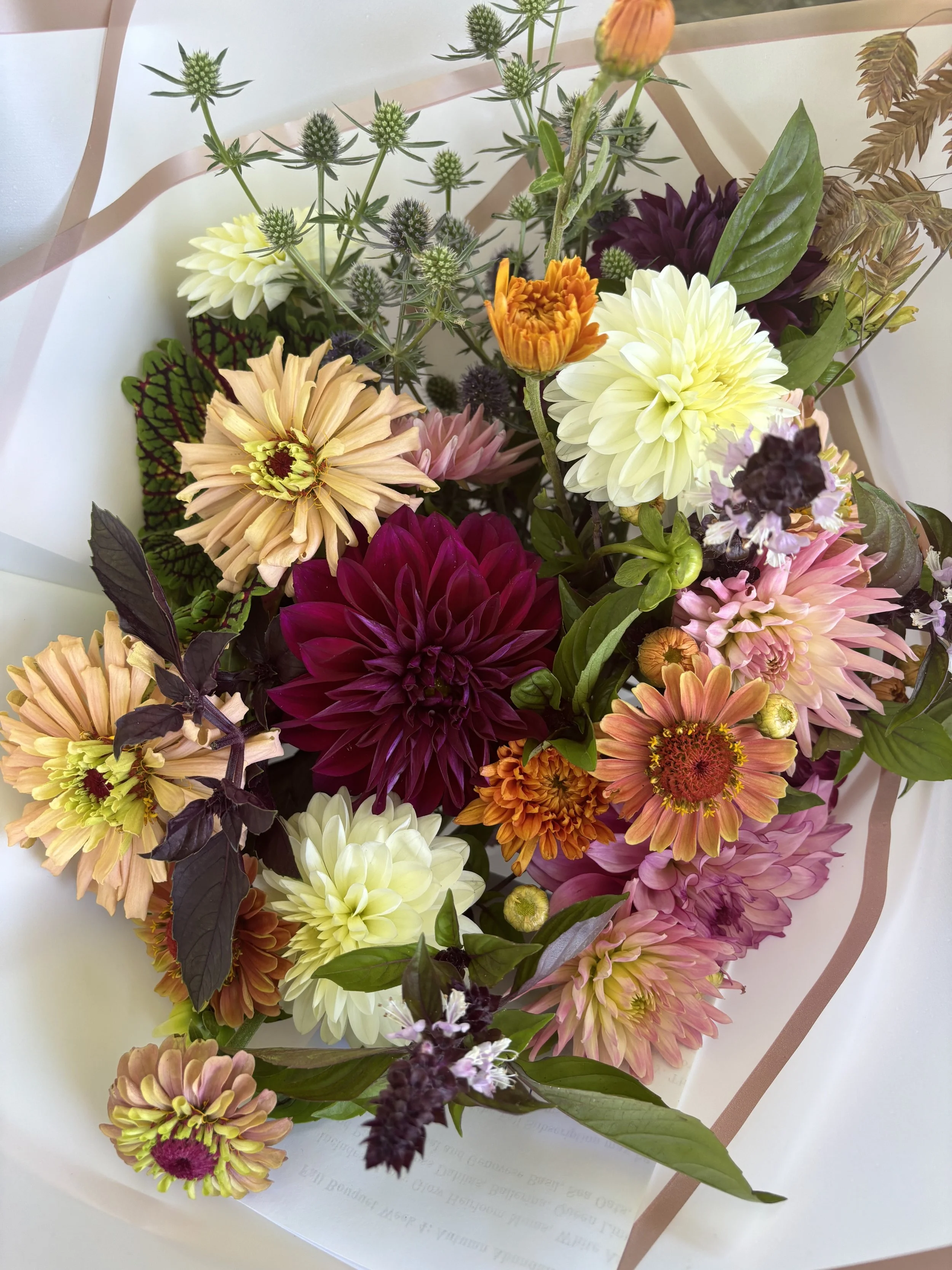 No chemicals, pesticides, or any other harmful substances are used to turn out these beautiful blooms. The only spray we use is a water hose! We also honor each season and the unique blooms they provide. There will be no peonies in August and no dahlias in May, but stunning seasonal flowers year round!